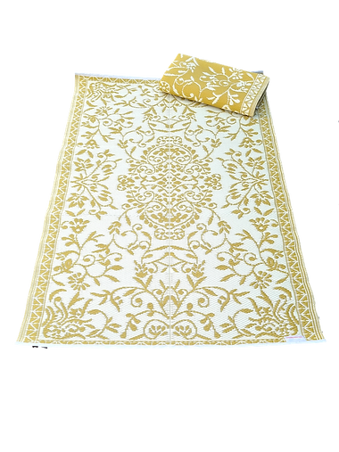 Buiten vloerkleed 120 x 180 - Okergeel/wit